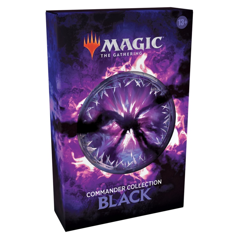 Commander Collection: Black is a boxed set of eight reprinted cards themed to one color and what it does bestin this case black, the color of ruthlessness and opportunity. These cards have been selected to showcase iconic black strategies in Commander, and each one has been given brand-new art with loads of references to popular legendary characters. They’ll be right at home in your favorite black deck alongside their legendary counterparts!