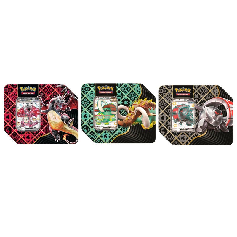 Behold the breathtaking power of Shiny Pokmon ex who transcend the boundaries of time and type! With this tin, choose the quaking force of Great Tusk ex as an Ancient Pokmon, the iron-clad determination of Iron Treads ex as a Future Pokmon, or the burning spirit of Charizard ex as a Darkness-type Tera Pokmon. Then, discover even more awesome cards in Scarlet & VioletPaldean Fates booster packs!